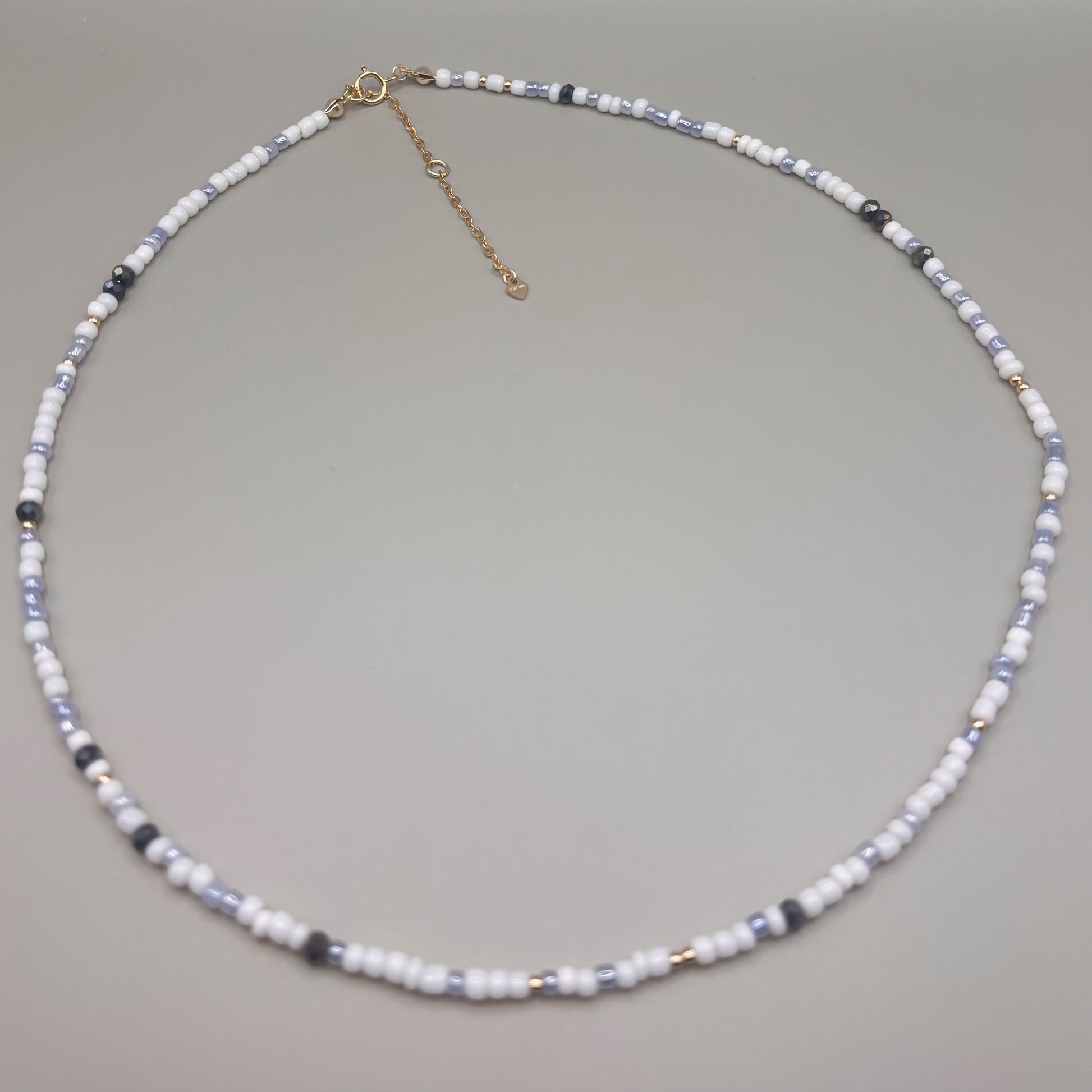 3mm colour seed beads on elasticated string with gold filled/sterling silver 2mm beads & heart charm. Bracelet is approx 6cm in diameter.