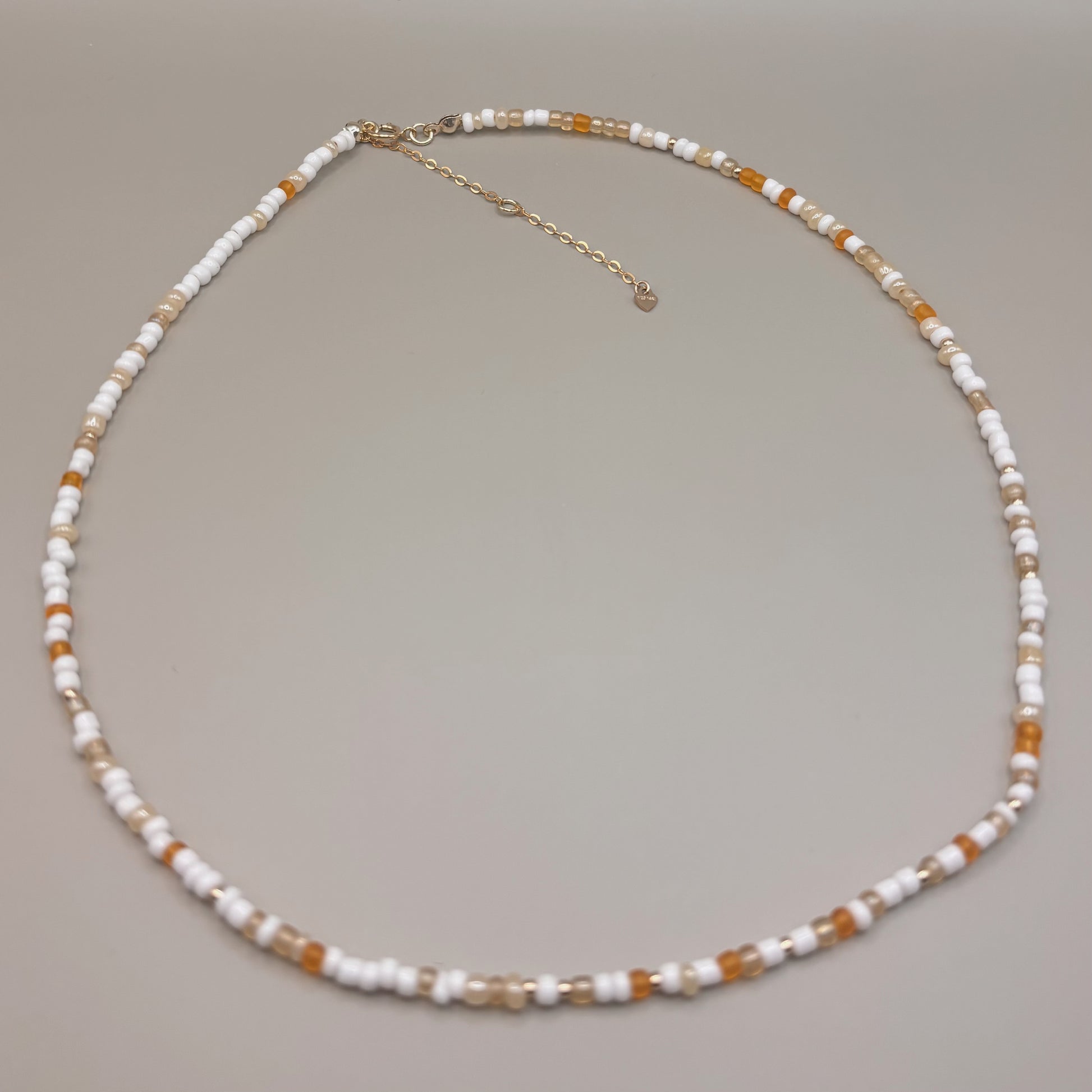 3mm colour seed beads on elasticated string with gold filled/sterling silver 2mm beads & heart charm. Bracelet is approx 6cm in diameter.